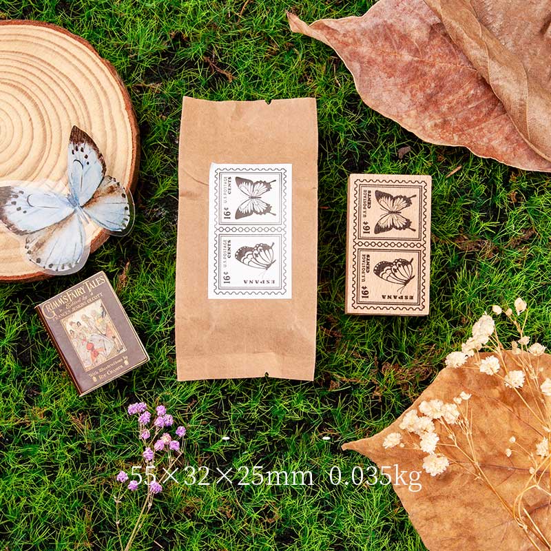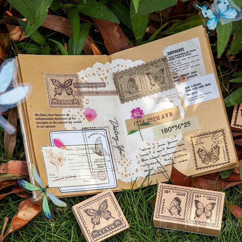 These stamps are designed to look like postal stamps with a butterfly design, perfect for those romantic faux letters.